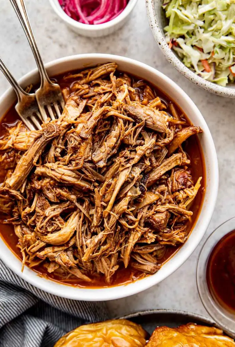 BBQ Sauce: For the finishing touch! While store-bought works fine, homemade BBQ sauce lets you control the sweet-tangy balance. You can serve it on the side, but it's recommended to mix some into the pulled pork right after shredding while it's still hot.