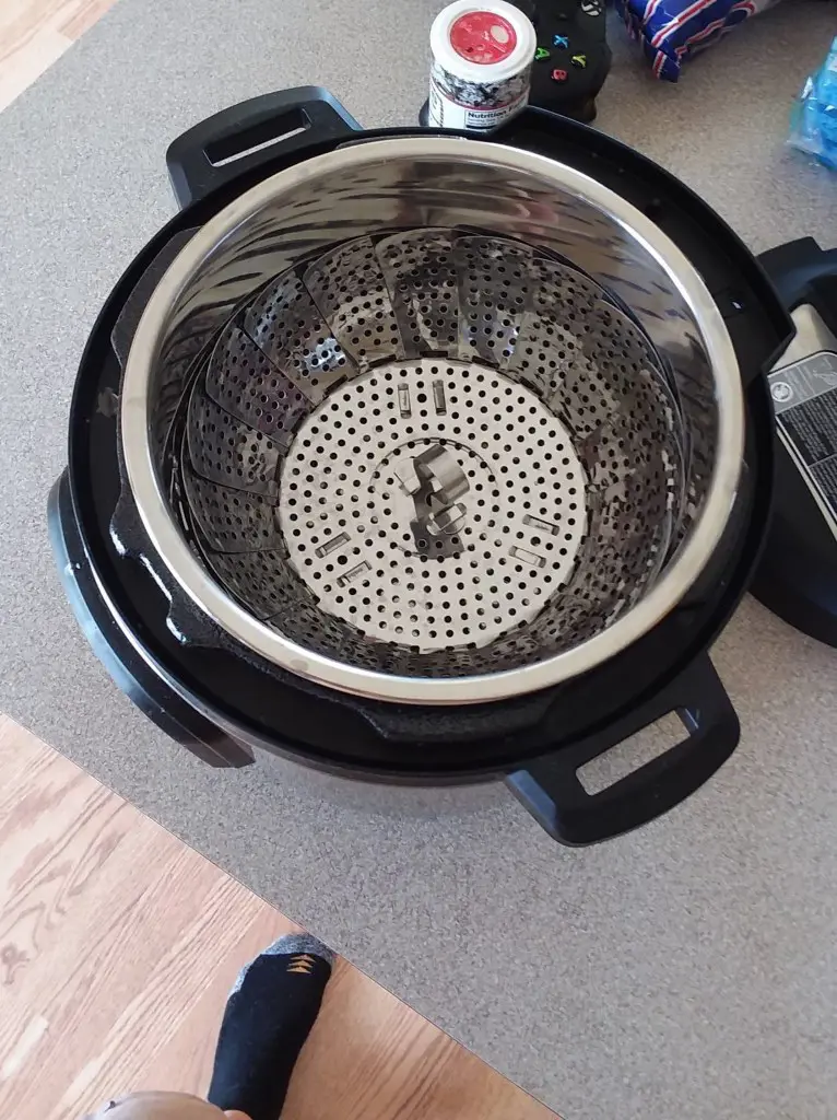 Place your metal strainer basket into the Instant Pot, positioning it securely above the water level.