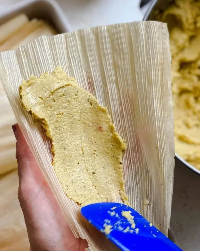 Spread your masa in an even, thin layer across each corn husk. A consistent thickness helps your tamales cook evenly and prevents them from becoming too heavy or doughy.