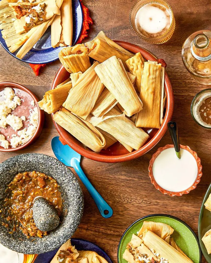 The table comes alive with fresh aguas frescas. These sweet fruit drinks really gleam with flavors such as watermelon, pineapple, and hibiscus. Every slurp cools the warmth of the tamales and amplifies their fantastic taste.