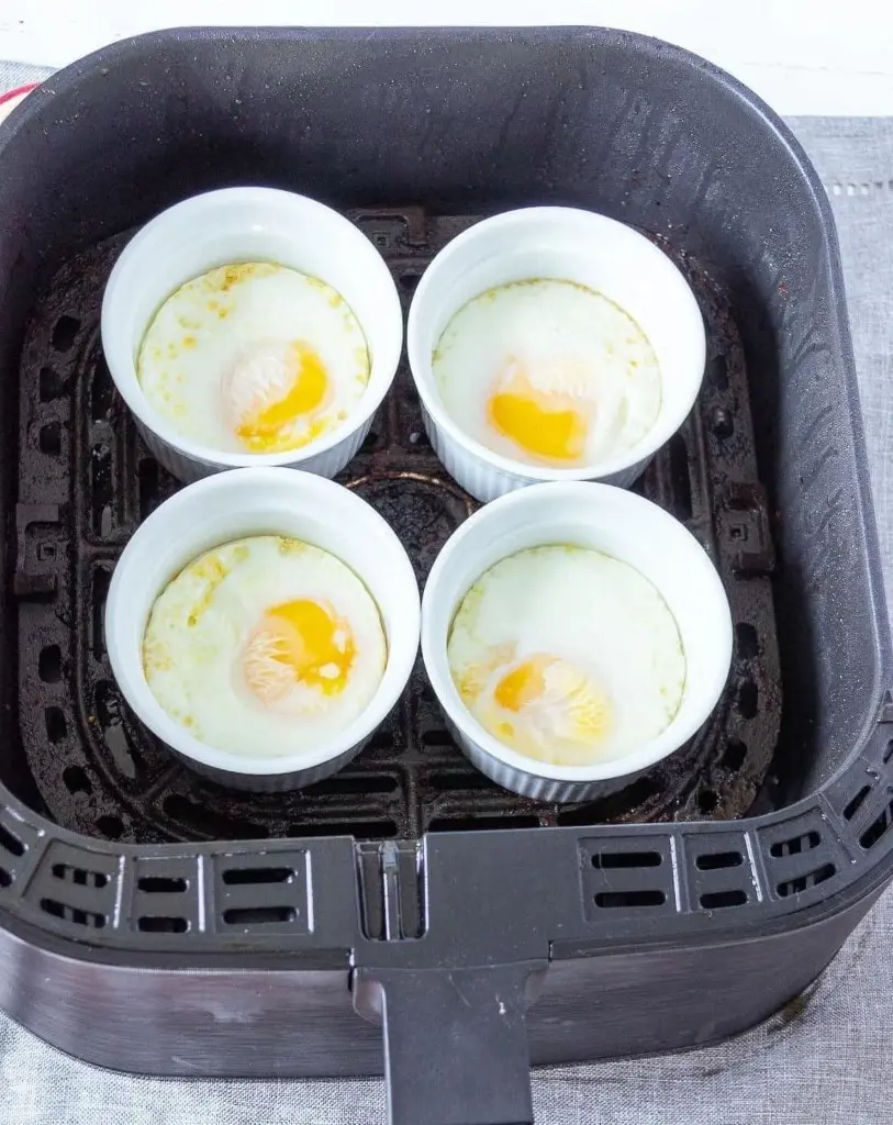 Place the ramekins in the air fryer basket, allowing small gaps between each for air circulation.