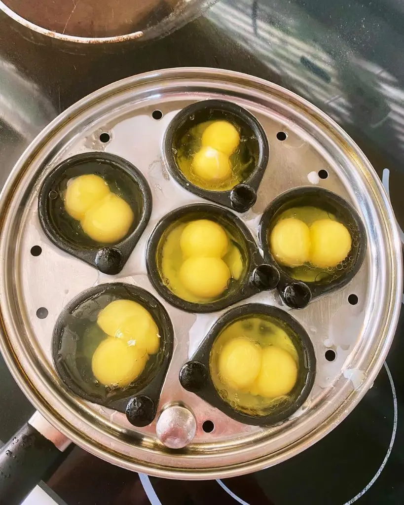 Fill the base of your egg poacher with about 2.5 cm (1 inch) of water. This creates the perfect amount of steam.