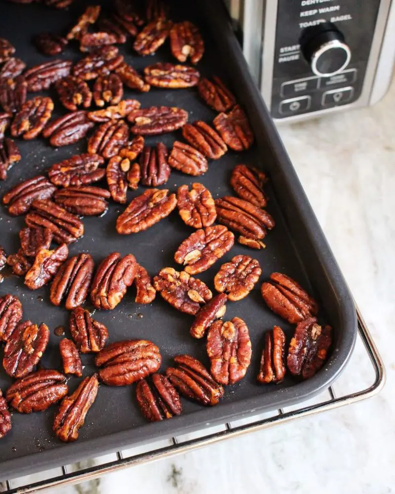 Watch for Doneness: Keep a close eye during the final minutes. Pecans should reach a rich, golden brown color. Take them out just before they look completely done - they'll continue toasting for a minute or two from residual heat.