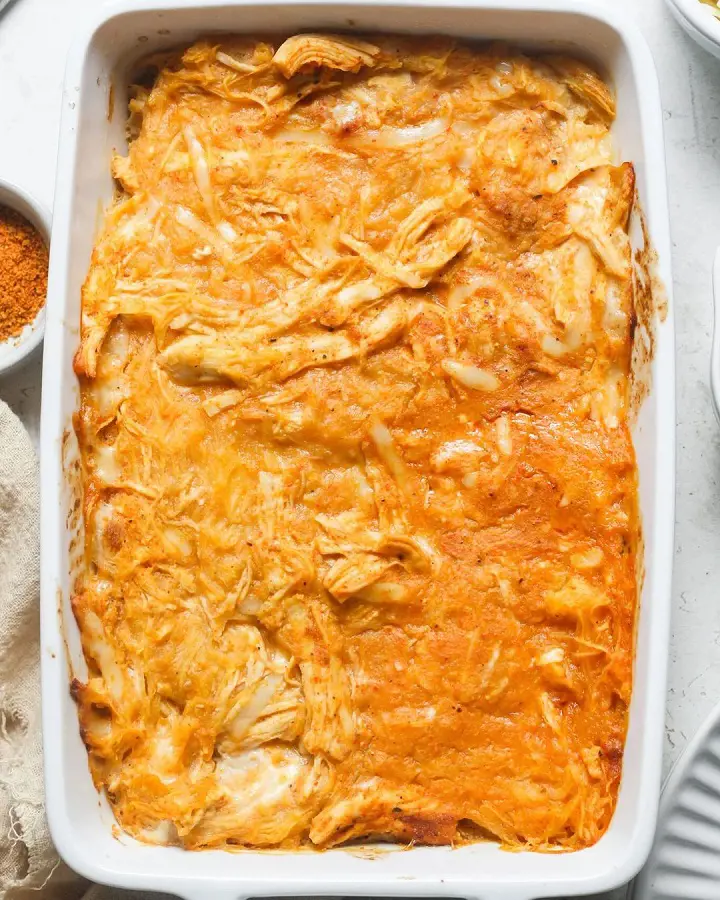 This casserole has a fiery kick from the cayenne peppered buffalo sauce, but you can adjust the spice level by controlling the amount of buffalo sauce you put in your casserole.