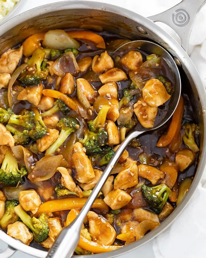This chicken and broccoli are doused in an aromatic Asian sauce made with garlic, ginger, soy sauce, sesame oil, salt, pepper, and cornstarch. The cornstarch thickens the sauce and coats the broccoli and chicken, ensuring every bite is delicious. It is best served over steaming white rice.