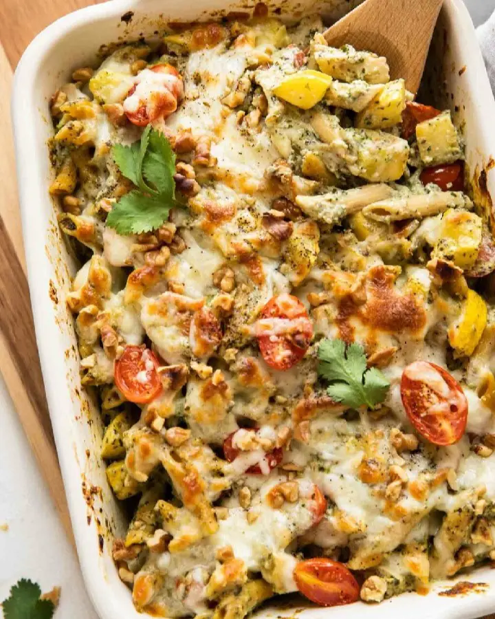 Made with leftover chicken, spinach basil pesto, whole wheat pasta, summer squash, tomatoes, and mozzarella, this flavorful meal is healthy and perfect for the entire family. The star of the show in this dish is the so make sure you are using good quality pesto sauce.