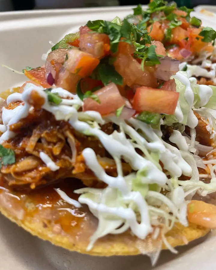 Chicken Tostadas will always be a satisfying and flavorful meal thanks to the delightful combination of crispy tortillas, savory chicken, and an array of toppings. Crispy tortilla acts as the base and is topped with leftover chicken and toppings like refried beans for protein and creaminess.