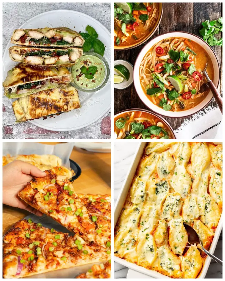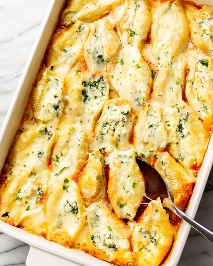 For a little Italian affair, you could make chicken and spinach stuffed shells for your next dinner. This dish features jumbo pasta shells filled with a creamy and flavorful mixture of chicken, spinach, cheese, sauce, and seasonings.