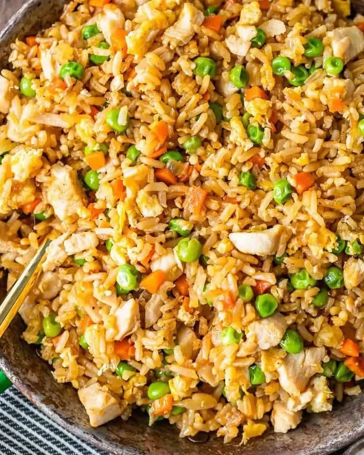 Throw in some eggs, soy sauce, oyster sauce, salt, pepper, and garlic powder with the veggies, rice, and chicken, and dinner is served in less than half an hour. Homemade fried rice is rich and flavorful and tastes much better than takeout.