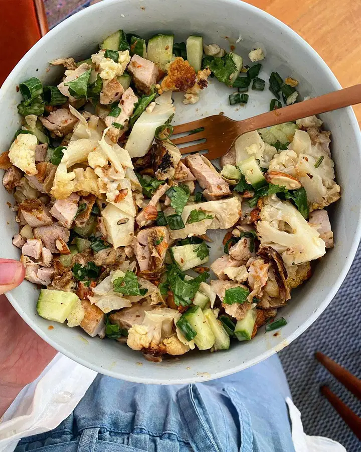 If you want something simple, try a classic chicken salad with shredded chicken with mayo, celery, onion, grapes, or nuts. But if you love bold flavors, try a buffalo chicken salad that has a fiery kick from the hot sauce.