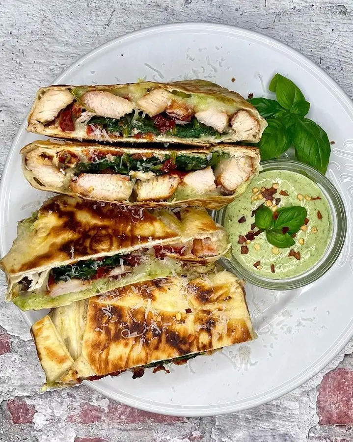 But the key to making this wrap so delicious is the sauce. You start with a creamy mayonnaise base, which is then blended with sun-dried tomatoes, Parmesan cheese, and grated garlic. You end up with a delicious spread you will not get enough of.