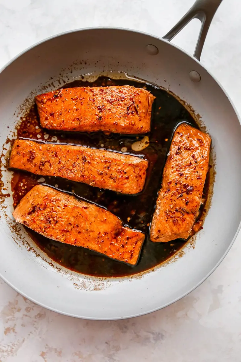 If you're worried about the fishy flavor, you can balance it with a touch of sugar. Glaze your salmon during the last few minutes of cooking, letting it caramelize to a slightly brown exterior. You will be left with a salmon fillet infused with an irresistible umami punch, perfect for rice bowls, noodles, or simply with steamed vegetables.