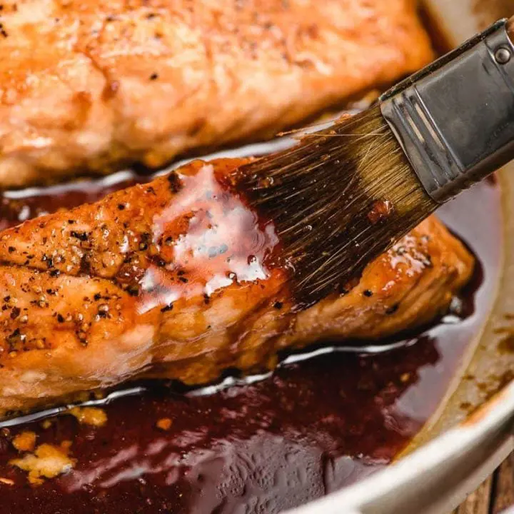 As the salmon cooks, the balsamic glaze marinade forms a shiny lacquer-like coating. It's a simple but elegant way to prepare salmon.