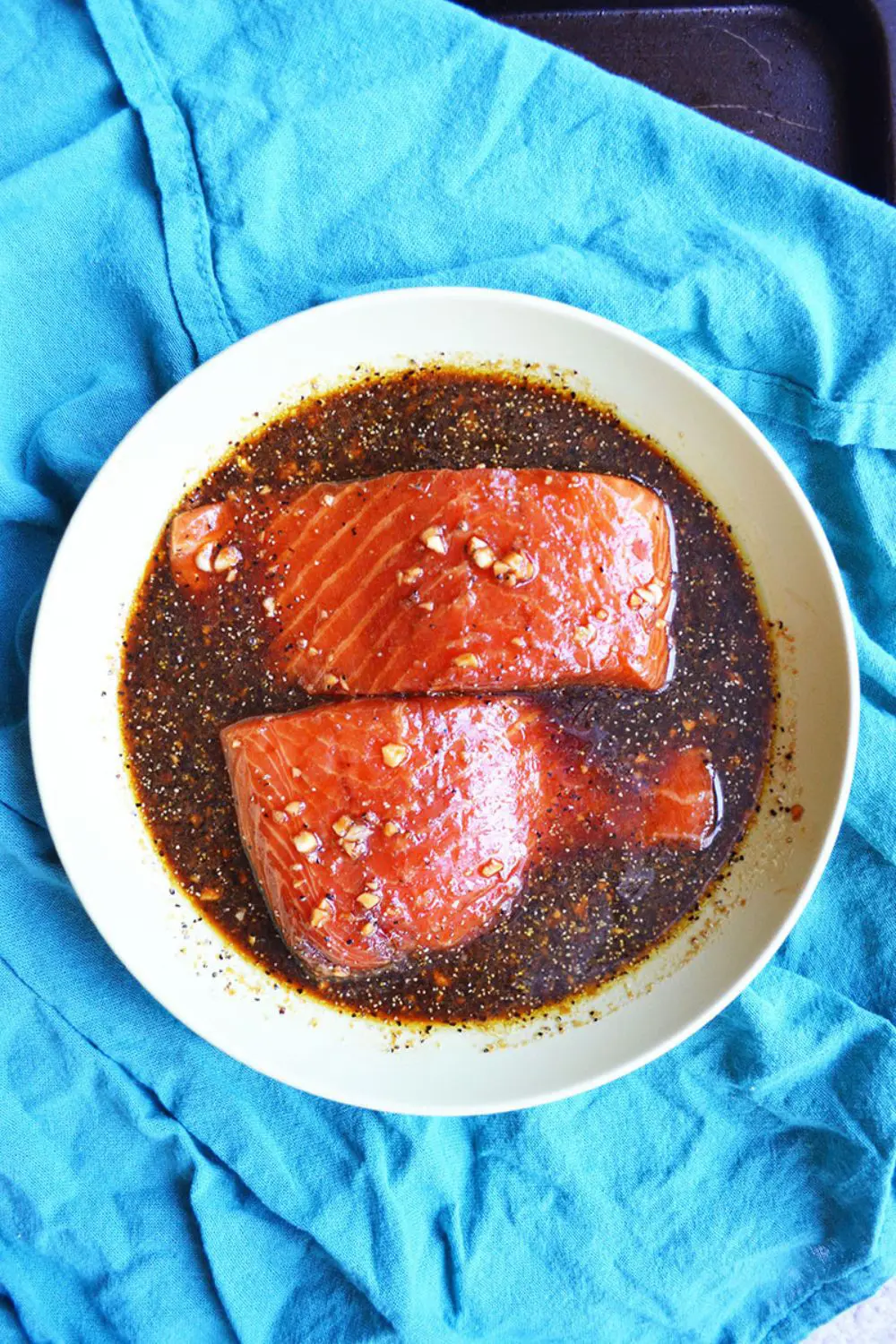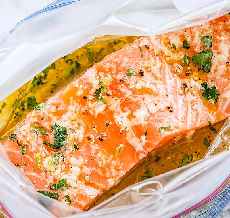 Marinating salmon fillets, steaks, or chunks before cooking infuses them with lots of extra flavor. While salmon has a deliciously mild taste on its own, marinades can bring out even more of its potential. A quick soak in a marinade adds so much taste and gives salmon exciting new flavors.
