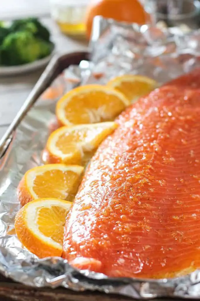 Similar to lemon garlic marinade, this orange ginger glaze is also a simple way to elevate the fish for flavor as well as presentation. The use of orange instead of lemon adds a sweeter, more complex dimension to the dish. The citrus elements in the marinade work to tenderize the salmon, similar to how marinades enhance the texture of chicken or steak. As the salmon marinates, the flavors penetrate the fish to create a juicy and flavorful final product.