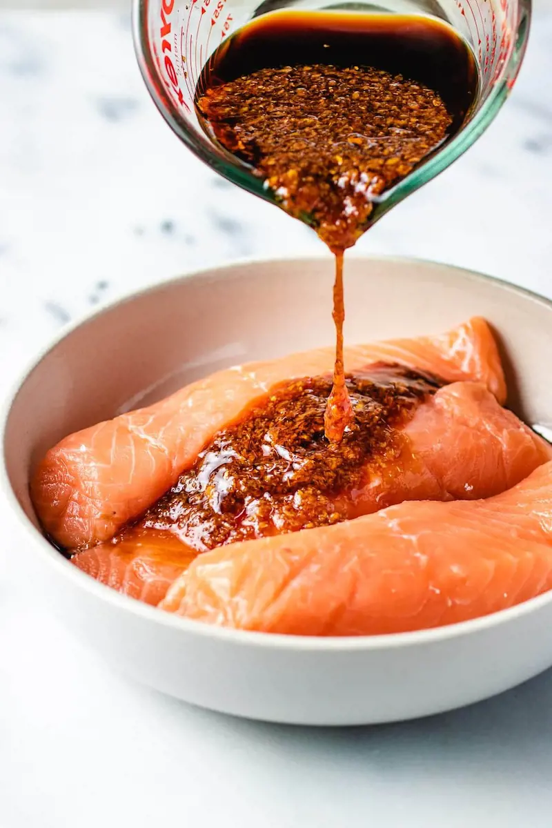 It is the combination of sugar or honey with the spicy kick of chili peppers that ensures that this marination stands out. The sweet and spicy combination is a popular choice for marinating salmon as it adds depth and complexity to the dish. It works well with various salmon dishes, from grilled fillets to baked salmon. Whether you're looking for a subtle hint of heat or a fiery kick, Sweet Chili Marinade is the way to go for a memorable dining experience.