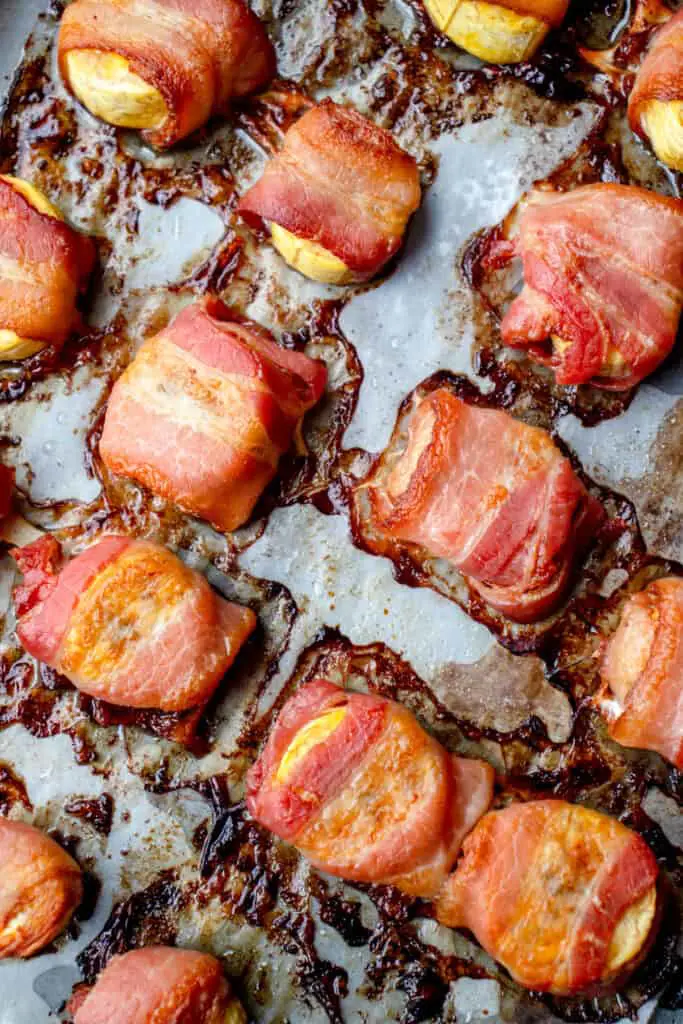 Ripe, sweet plantains are sliced and wrapped in bacon secured with a toothpick then baked or grilled until the bacon becomes crisp. The saltiness of the bacon contrasts nicely with the plantains' mellow sweetness. So, if you're looking for a nutritious version of the bacon-wrapped food, this plantain version should be on your radar.