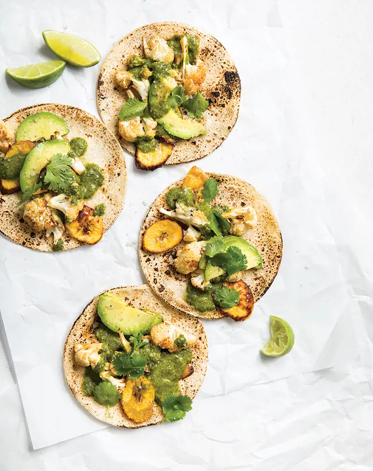 The beauty of plantain tortillas is you can top them just like regular tacos, while their golden color and faint fruitiness give them a unique flair.