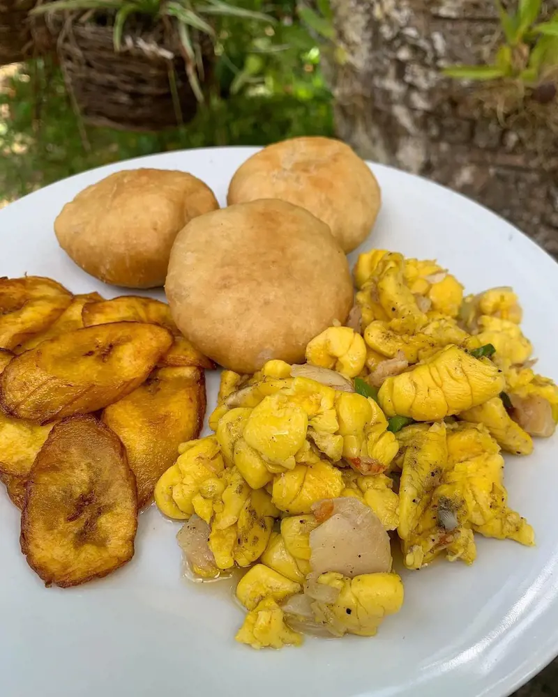 Tatale is a traditional West African dish from Ghana featuring plantain pancakes often served with pepper sauce and grilled tilapia. To make this dish, ripe plantains are mashed and pan-fried into golden brown flat cakes. You can find certain indentations made on the cakes with a spoon.