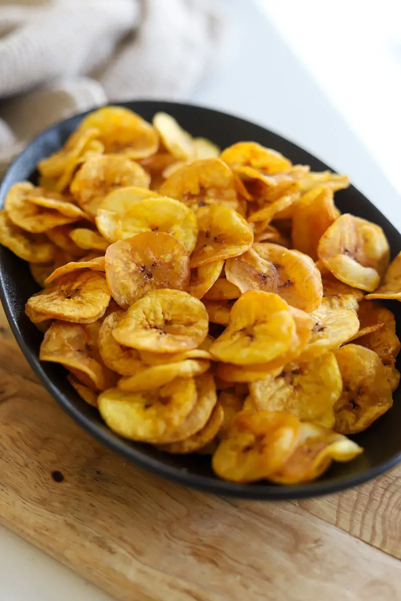 Crispy fried plantain slices or chips are popular in Central and South American, Caribbean, and African cuisines. Ripe, blackened plantains are preferred for frying because of their naturally sweet flavor and soft texture.
