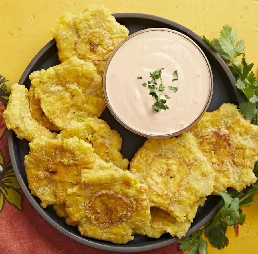 Unlike other Latin American variations called patacones or fritos verdes, Puerto Rican tostones are left flat versus molded into a cup shape to pile on fillings. These are usually served as a side dish or an appetizer.