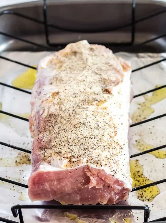 - Seasoning: Season the pork loin generously with salt and pepper. You can also create a rub with your favorite herbs and spices. Common ingredients include garlic powder, onion powder, paprika, thyme, rosemary, and brown sugar. Rub the mixture all over the pork loin to ensure it’s evenly coated.