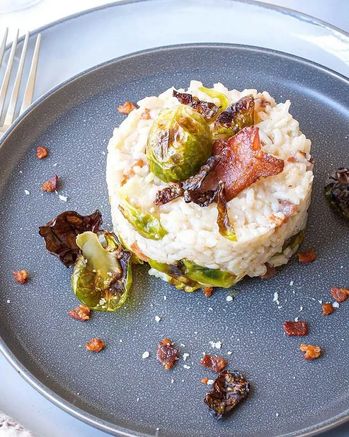 A bacon and Brussels sprouts risotto is a testament to the magic of simple ingredients coming together in a truly delicious way.