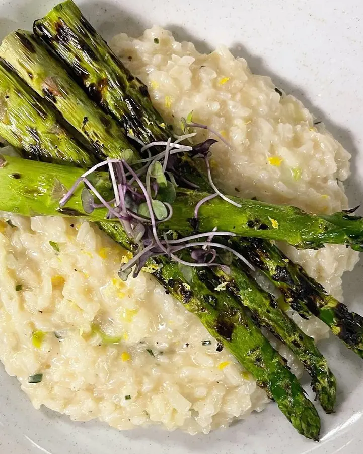 The zesty lemon tang and the earthy sweetness of the asparagus cuts through the richness of the creamy rice. You can also swap the asparagus for other seasonal vegetables like broccolini, green beans, or even pumpkin to keep things fresh.