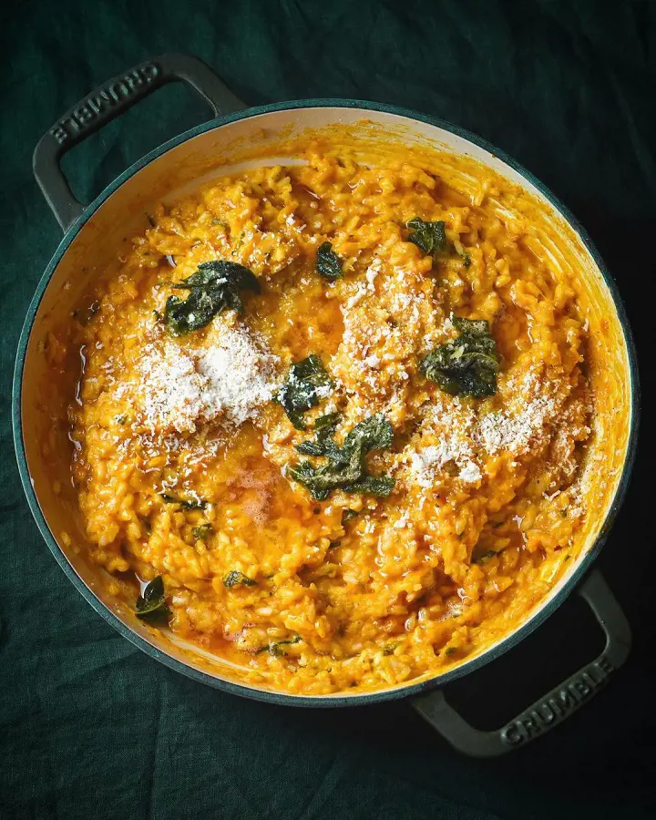 Roast some pumpkin, simmer creamy rice, and let the broth and sage do the work. You will be surprised how something so simple can be so utterly delicious. Your soul and taste buds will thank you.
