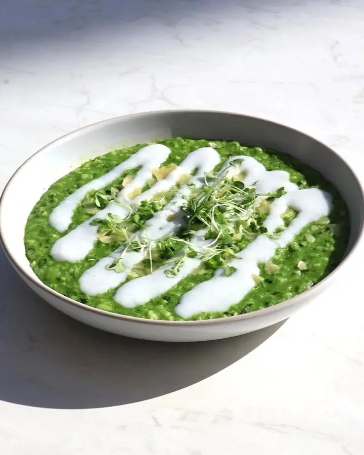 Spinach and feta risotto is a flavor party in a bowl. It is not heavy or boring. It is a delicious surprise in every bite. The fluffy and creamy rice turns emerald green from the juices of the spinach and dances with tangy feta crumbles like confetti.