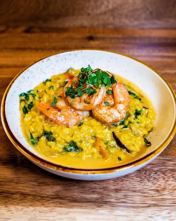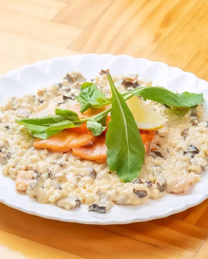 This risotto is perfect for a date night or celebration but surprisingly simple to make yourself. Some recipes add crispy bits of fried salmon skin for an extra textural crunch.