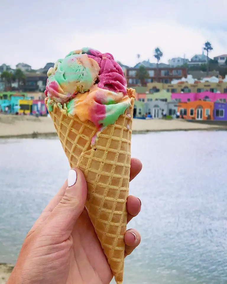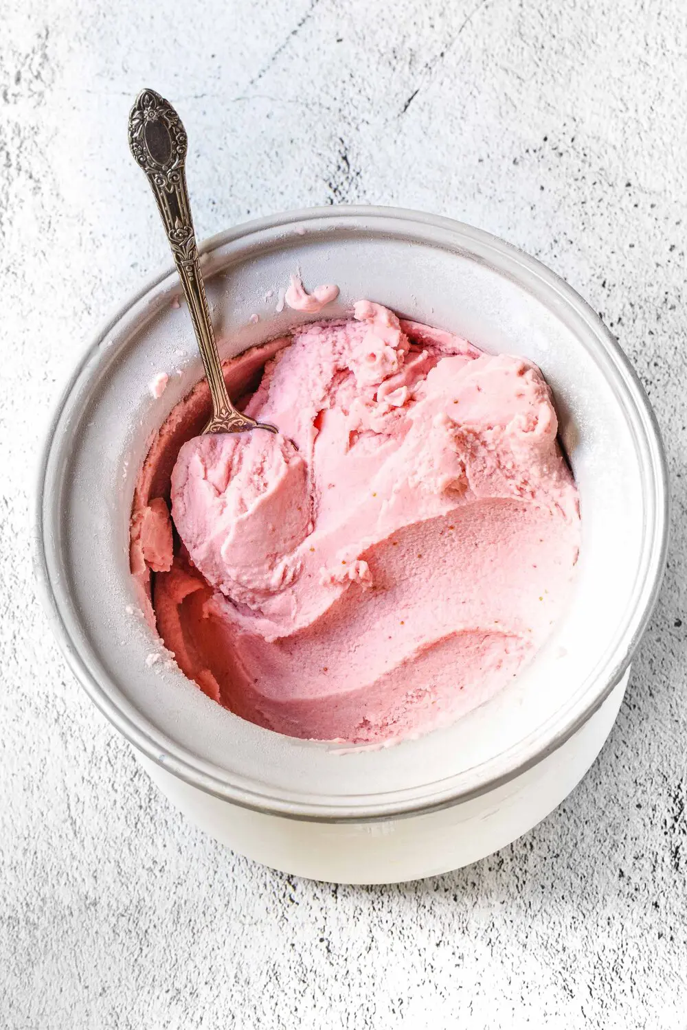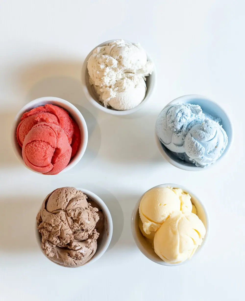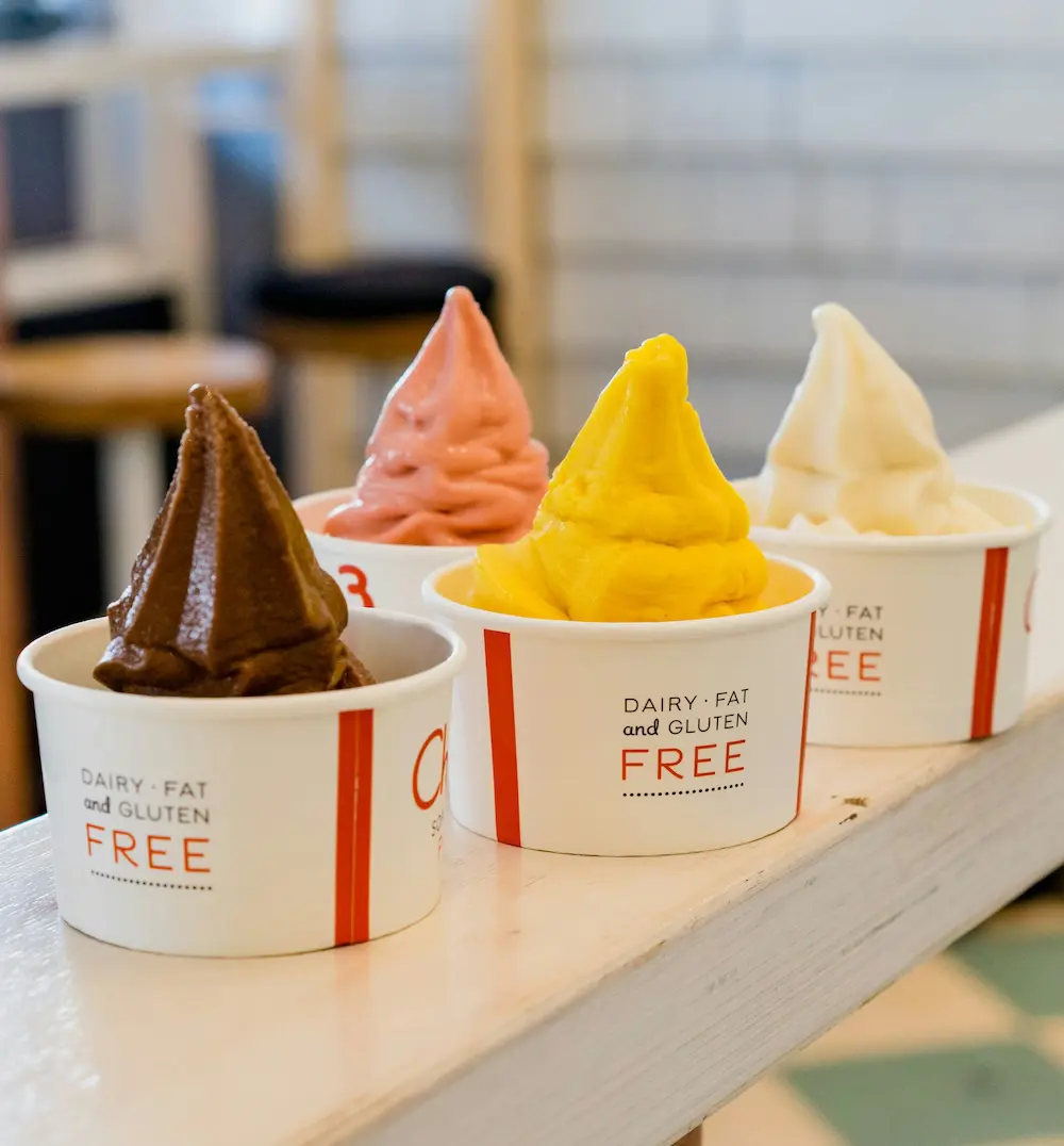 Ice cream, in turn, contains cream or milk, egg yolks, sugar, and often fruit or other flavors. It has the richest texture of the three - creamy, dense, and smooth. It contains milk or cream which amounts to about 10-16% of the total composition of the treat.